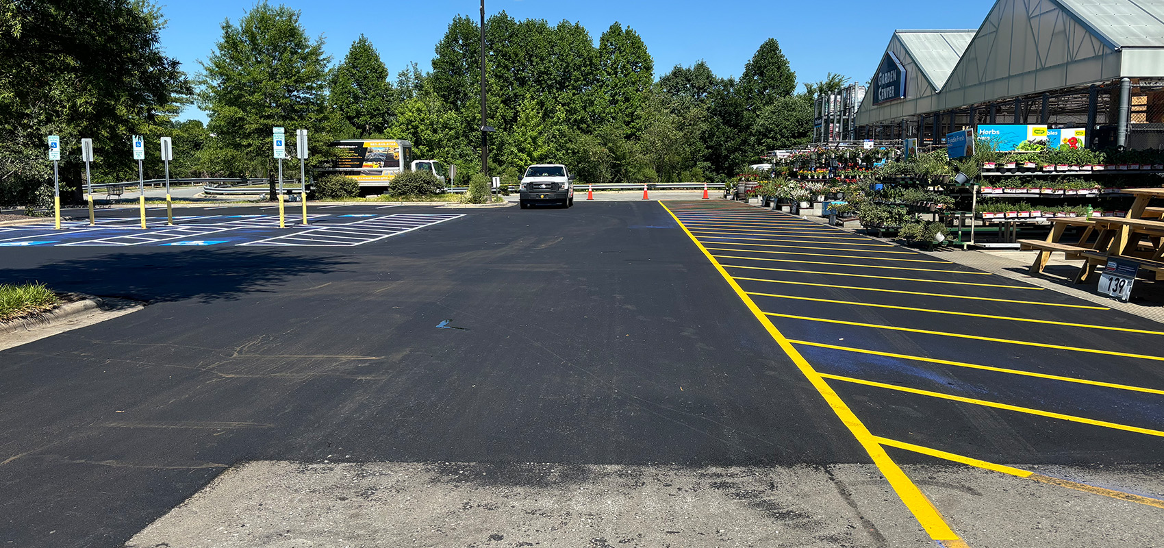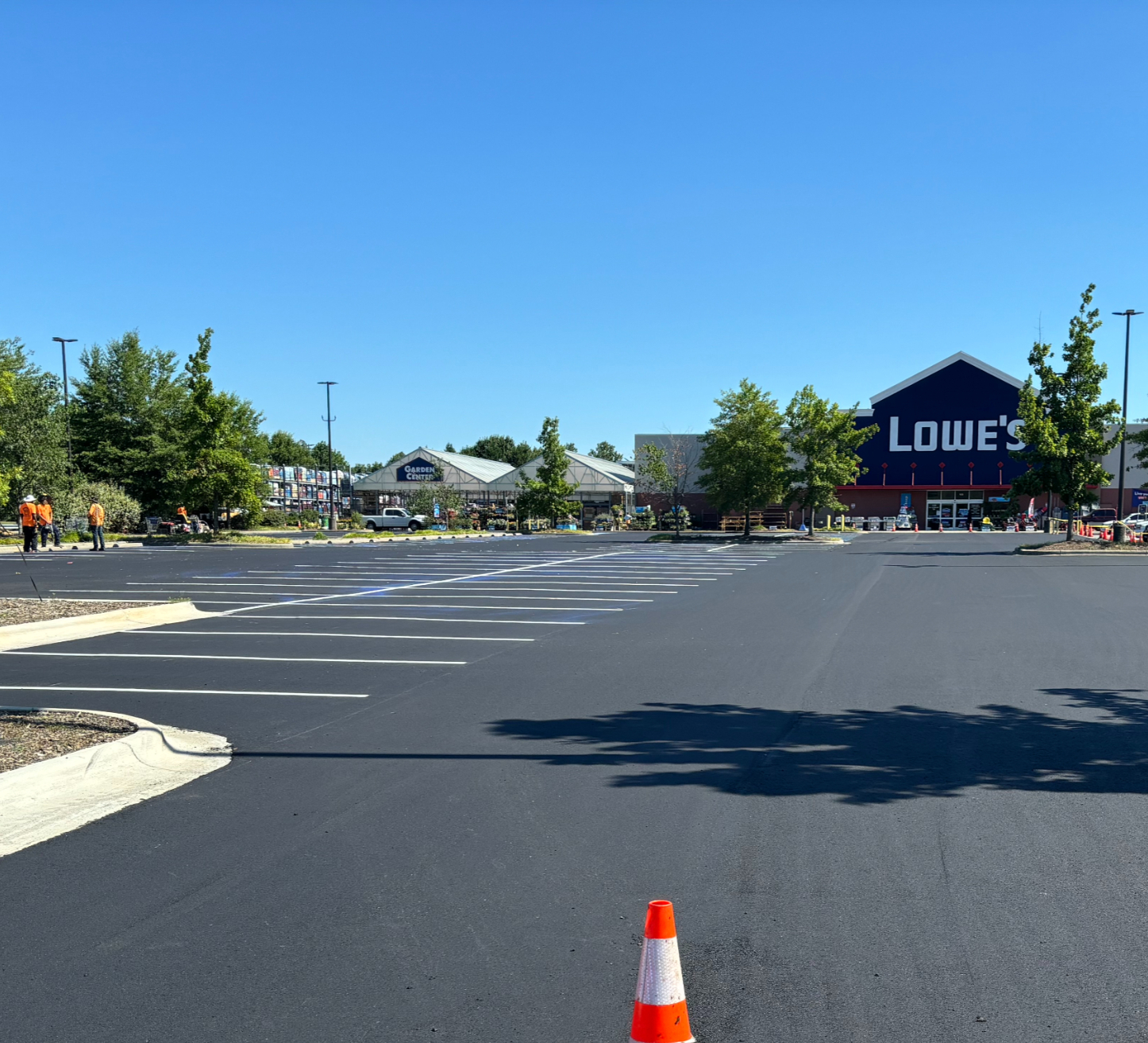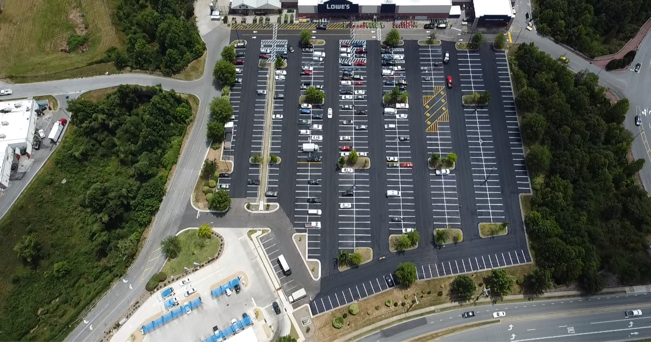 Our team recently completed a 180,000 square foot mill and pave project for a Lowe's parking lot in Greensboro, NC. The project consisted of milling the existing surface and paving fresh asphalt, resulting in a smooth parking area that improves the customers overall experience. Our striping crew followed up by restriping all of the previous markings & parking stalls per the original layout.