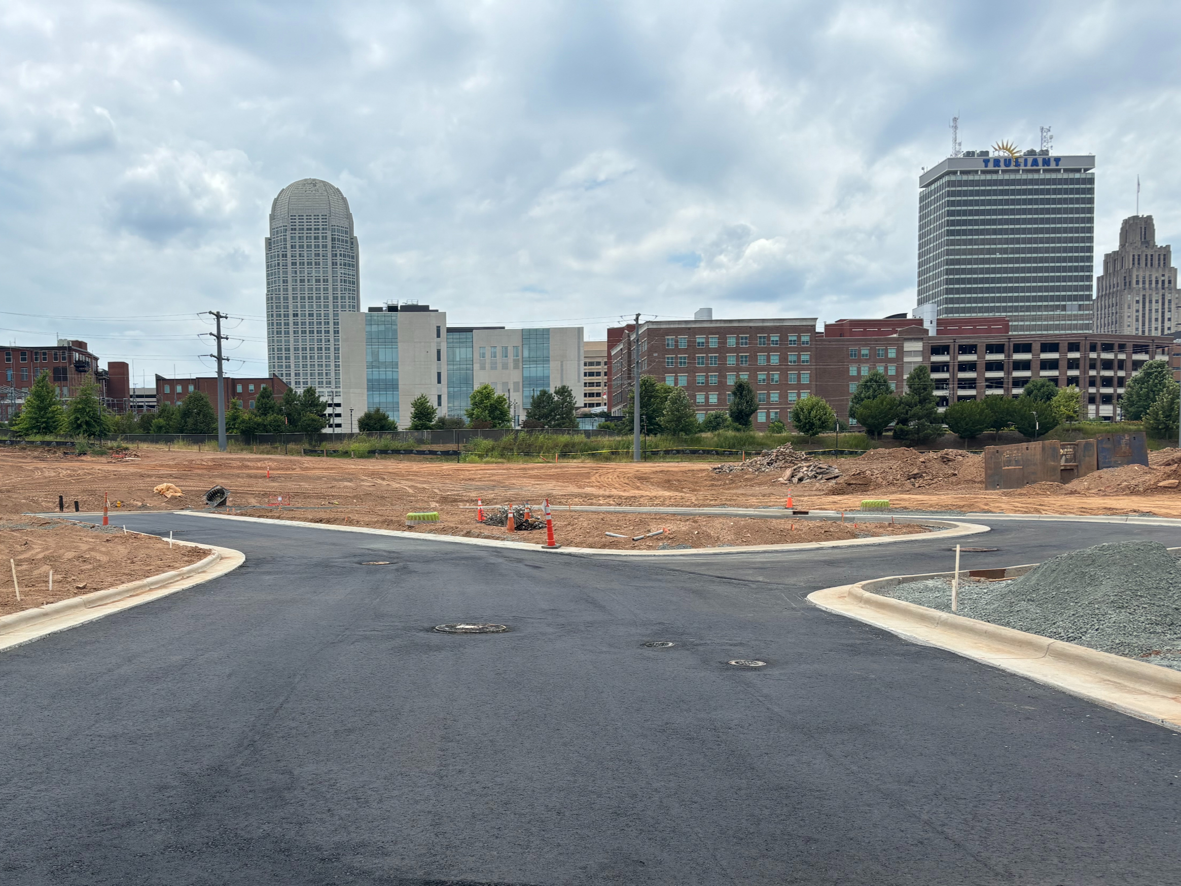 Crown Paving is proud to be a key contributor to the IQ2 Infrastructure project. Located just off Research Parkway in downtown Winston-Salem, this project showcases our comprehensive range of services. Our team is responsible for constructing all roadways, installing curb and gutter systems, and applying specialized stamped asphalt & thermoplastic markings. This ongoing project, slated for completion in 2025, demonstrates Crown Paving's ability to manage complex, large-scale projects over long periods of time.