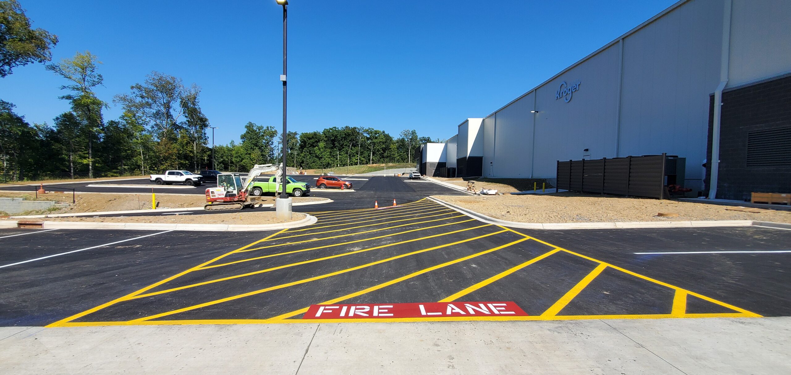 We began our part at Kroger FC11 in the summer of 2023 and successfully completed it the summer of 2024. Crown Paving poured all curb and gutter using our curb machine, paved the entire parking lot, and also managed the installation of various fixtures and pavement markings. This project underscores our commitment to delivering quality and reliability in handling large-scale commercial assignments over long durations.